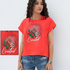 گل این تیشرت نه وسطه، نه بزرگه و نه تو چشم، دقیقا همونجاییه که باید باشه، موندگار، عملگرا، قشنگ…